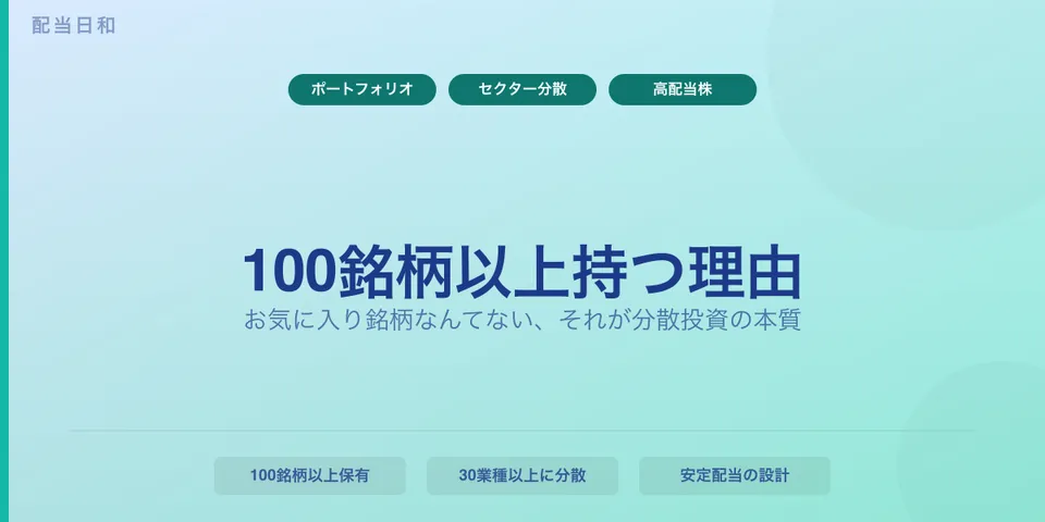 高配当株を100銘柄以上保有する理由と、30業種以上に分散したポートフォリオの実際。セクター比率データと設計思想を正直に公開します。